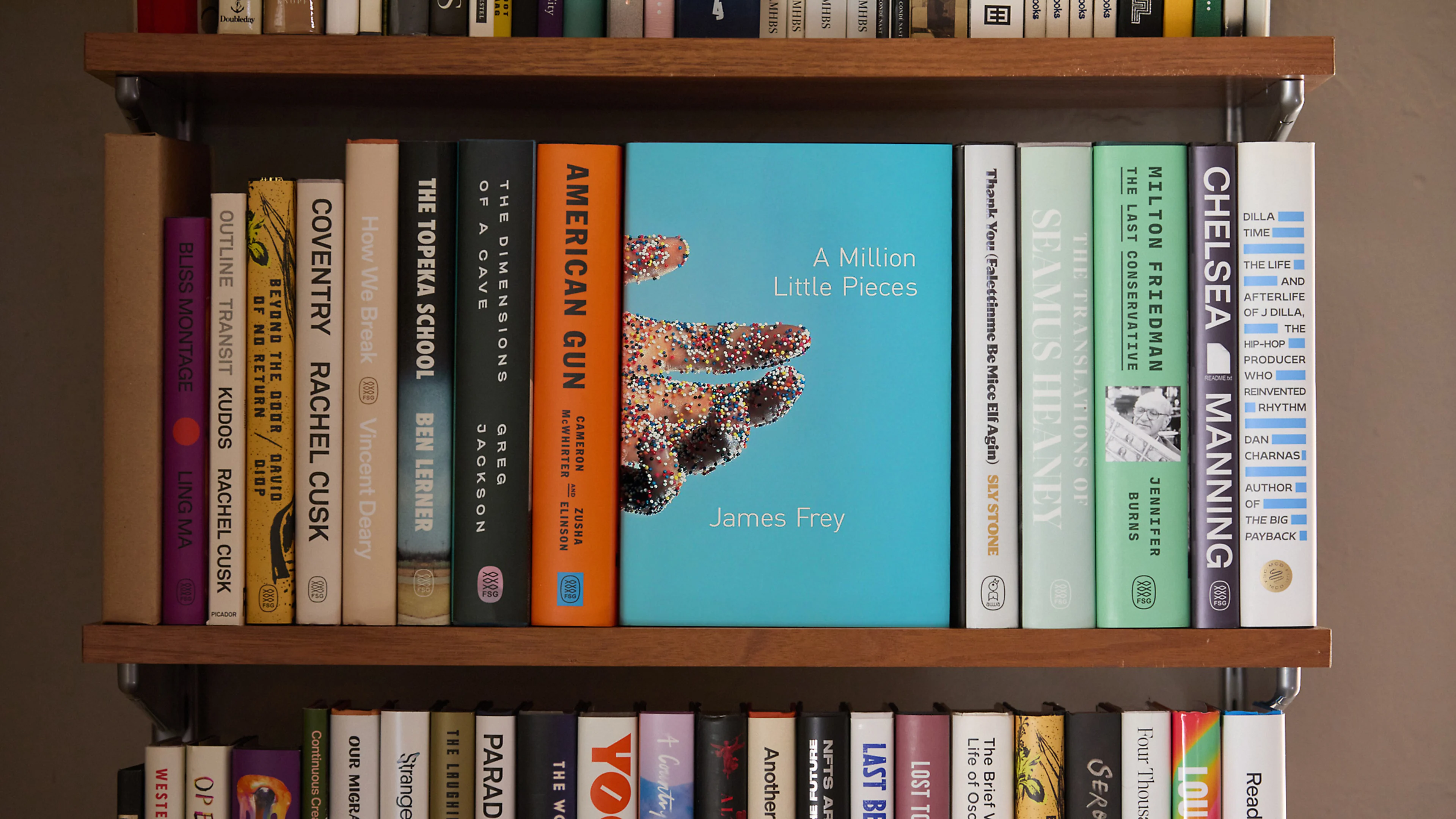 Consider his chameleonic cover hits. The Fault in Our Stars. The Brief Wondrous Life of Oscar Wao. Survivor, Lullaby and the rest of Chuck Palahniuk’s catalog. Rachel Cusk’s books. James Frey’s controversial A Million Little Pieces, the cover that helped launch Corral into ubiquity. Recent collaborative output like Intermezzo and Mojave Ghost. The books don’t have obvious visual connective tissue between them—but somehow, as creative director of Farrar, Straus and Giroux and his eponymous studio, Corral has spent the past three decades quietly redefining the look of the modern book again and again.